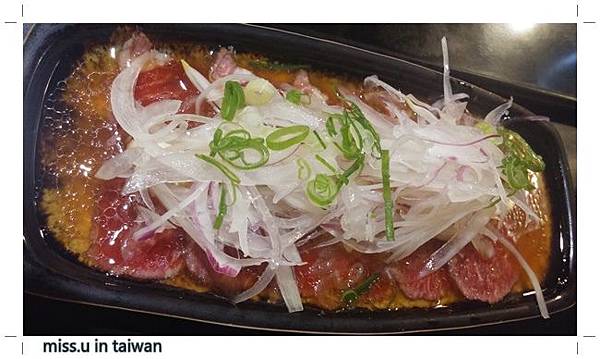 醃漬的醬料一點點的鹹味,將牛肉的腥味去除,不嗆鼻的甜洋蔥讓適當的保持清爽感。
